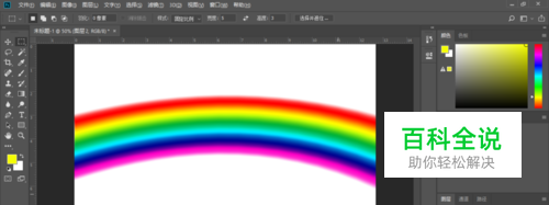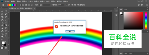 打开photoshop,我们新建空白图层,并绘制一个彩虹。现在这个图片是正常的,不会报“目标通到被隐藏”的错误。接下来,我们将其调整到报错的状态。