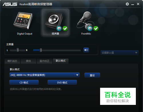 在“喇叭组态”里选择“立体声”,这是原声。如果装音响,可以选择“四声道”