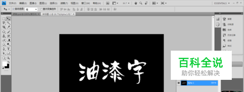 打开通道控制面板,新建一个Alphal通道,并在Alphal通道中输入“油漆字”,将字体颜色为白色,然后Ctrl+D取消选框。