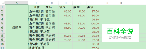 如下图是一张学生成绩表,我们可以看到第一列是合并之后的数据