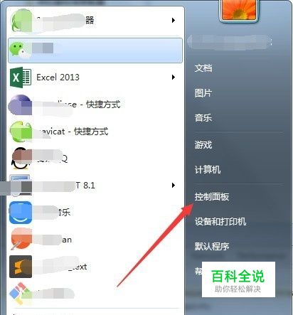 首先,点击电脑左下角的“开始”,选择开始菜单中的“控制面板”,如图所示。