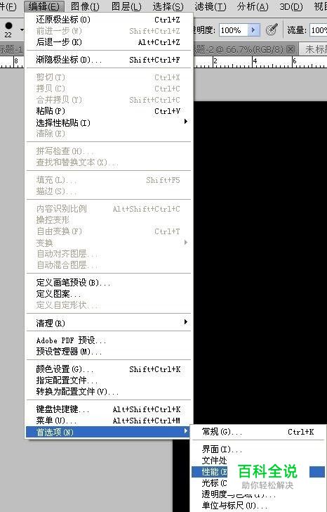 要优化性能,首先要修改的就是设置。 首先打开菜单栏的编辑--首选项--性能。