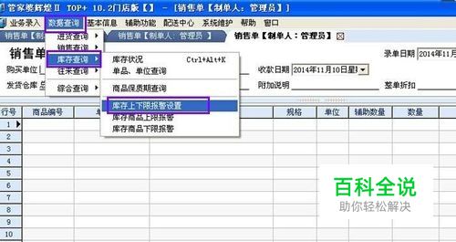 打开软件找到数据查询下的库存查询---库存上下限报警设置。