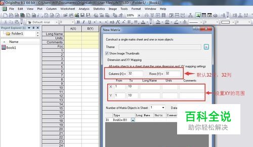 1)Set Dimensions and Labels规格与标签 通过执行Matrix-Set Dimensions and Labels命令,可以上设置Matrix的大小,如图为设置窗口,Matrix Dimensions标签可以设置Matrix大小,xy Mapping标签可以设置匹配的区域。