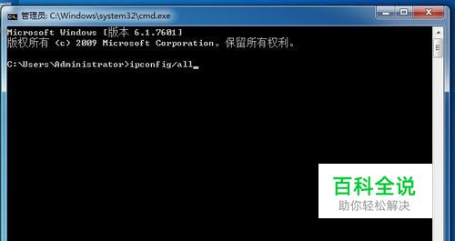 进入到运行命令界面以后输入ipconfig/all回车