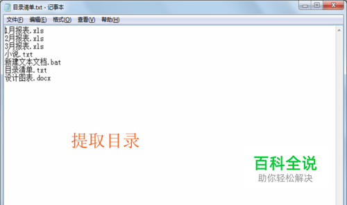 打开目录清单文件,查看效果,这个时候你会发现该文件夹下的所有文件名称均被提取出来了。