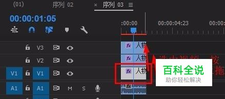 2、选中视频,按住alt键向上复制视频到v2轨道,同理复制到v3轨道