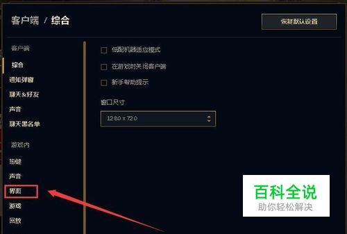 在设置页面选择界面分类进入界面设置。界面设置有很多其他类设置,下拉找到冷却时间显示。