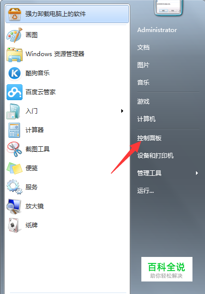 打开电脑左下角开始菜单,在右方菜单栏找到【控制面板】,点击打开