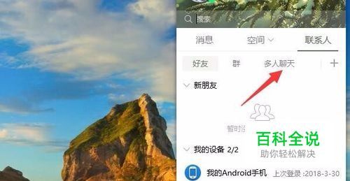 先登录自己的QQ,然后点击多 人 聊 天 ,见下图。