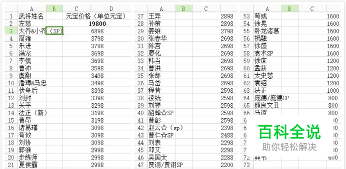 先上一张元宝武将的价格一览表(20140401)这个是按照元宝的价格排序的。