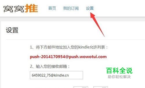 这里可以看到您的kindle接收邮箱,等会需要填到窝窝推网站上(第三步中提到的接收邮箱)。 将第三步提到的红色邮箱地址加入到kindle允许邮箱列表中。