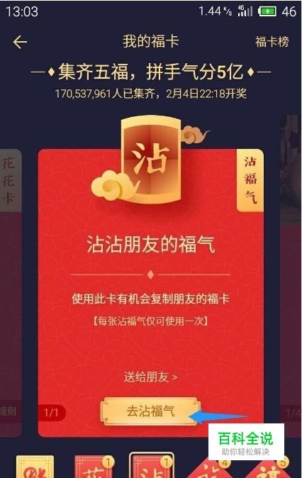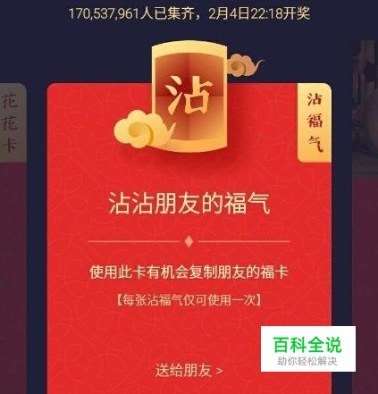 好友只剩两张卡后,就可以用沾福气去沾了。