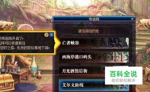然后我们可以看到有这么几个选项,然后我们选择最后一个艾尔文防线,点击一下,然后就会移动在艾尔文防线这里。