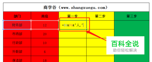 打开要处理的文件,找个空白处输入=E6&F6&"人,"(D6、E6是要处理单元格的坐标)。然后回车,就变成了 财务部12人,,这样处理的目的是合并到一起后会有逗号“,”分开每个单元格的内容。将鼠标放置 财务部12人,的右下角变成一个黑色十字后向下拉,依次填充每个单元格。如下图所示:
