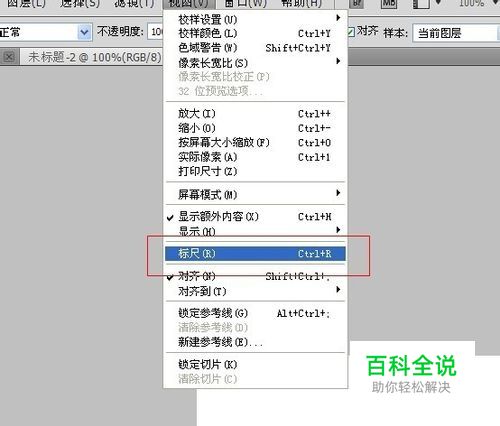 我们找到视图找到标尺,快捷键是ctrl+r,我们马上就显示我们标尺了