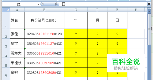 大家都知道身份证号总共有18位,其中从7位起的8位数是出生日期,在工作中,我们有时想利用身份证提取其中的出生日期,怎么操作呢?比如下表中,我们要提取5个人的出生日期。