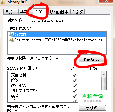 第一步,选择小锁头的文件夹-右键点击属性-打开属性选项卡-选择安全并点击编辑。如下图所示: