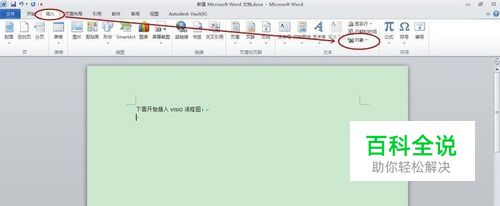 2、在上方工具栏找到“插入”,然后找到“对象”,如下图所示:这是word2010的界面,其他版本的对应寻找一下即可。