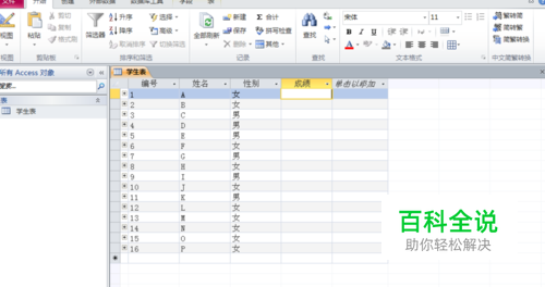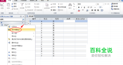 操作方法: (1)鼠标右击对象性,选择 设计视图,进入 设计模式,或 鼠标 单击 右下角的 设计视图 图标 ,直接进入 设计模式... (2)单击 成绩 字段 的 任意一点,在其 常规 选项卡 下 ,找到 有效性规则,并输入:Is Not Null And >=0 解析:这里的Null 为 空值的意思,整句话,翻译过来,则是:不是空值且大于等于0 (3)点击右下角的 数据表视图 图标,弹出 保存设置 对话框,点击保存按钮,并返回到原来的视图模式...