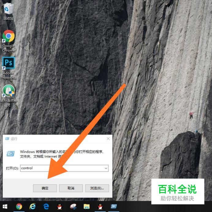 弹出“运行”程序后,在“运行”框内输入“control”,点击“确定”。