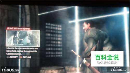 任务:CAGED FIGHYER 胜利目标:救人 对于已经杀人如麻的主角来说这个任务已经很简单了,用枪或者飞刀杀了弓箭手,然后解决了地上的小兵,进去开门,之后接到任务。