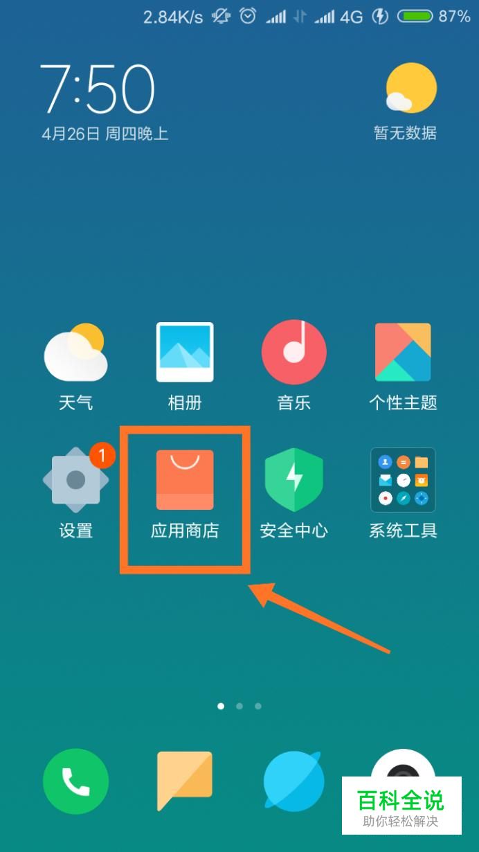 首选我们先在手机桌面上找到“应用商店”,点击进入。