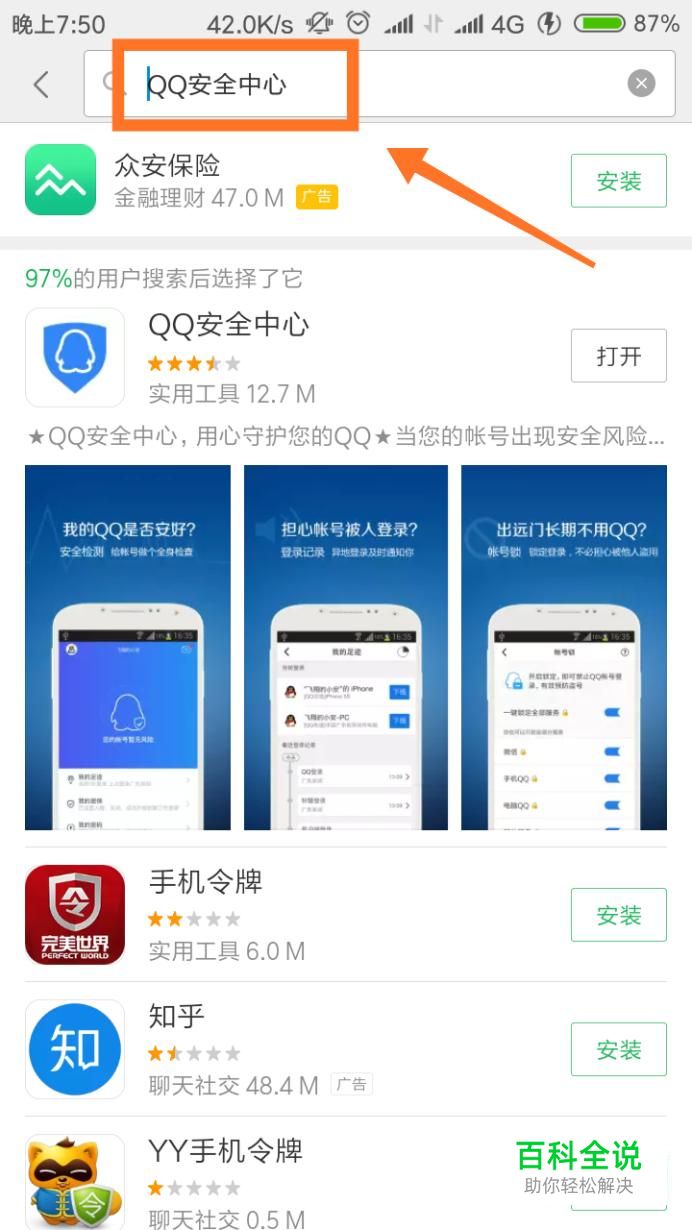 进入到“应用商店”之后,在最上方点击搜索“QQ安全中心”下载并且安装。