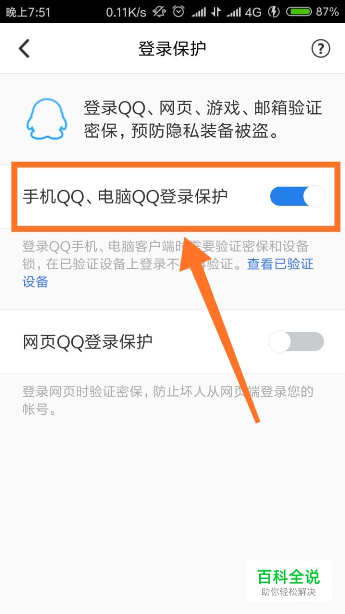 进入我的保护之后,点击手机QQ,电脑QQ登录保护,把后面的那个图标关掉就好了。