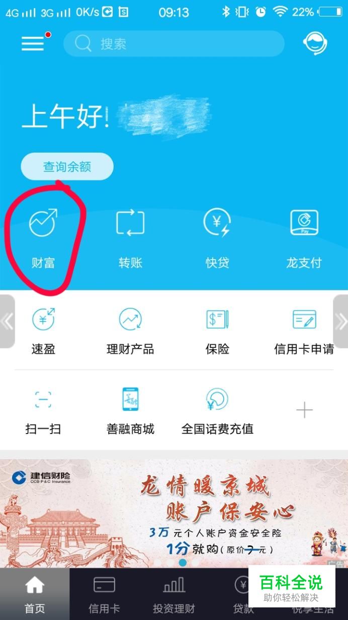 首先,打开建设银行APP,点击“财富”之后会出现登录页面,输入身份证号和密码即可登录。