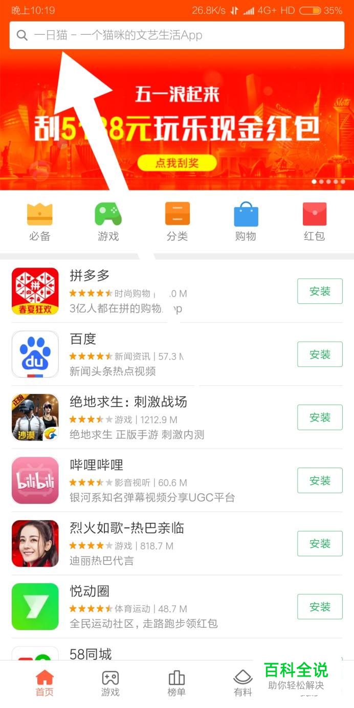 首先进入我们手机的应用商店,在搜索栏输入自己需要下载的软件名称。
