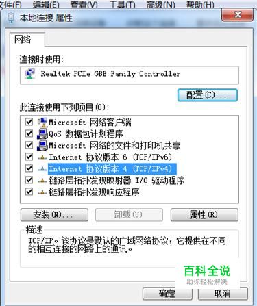 接着在“此连接使用下列项目”底下点选“internet协议版本4”,再点下面的“属性”,看看出现的界面里是否是“自动获得IP地址”,如果不是就改成自动。