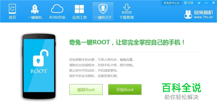 救砖方法: 通常我的刷机方式为两种,线刷和卡刷。首先就从线刷开始阐述如何拯救由于线刷说造成的刷机失败或是手机成砖了的拯救方法。 刷机险情一、使用RSD工具线刷。刷机过程没问题,但最后RSD却显示 please manually power up this phone。(请手动启动手机,刷机没有问题,不要紧张。)刷机失败解决方法:1.这是提示手动开机的意思,直接用手按开机键开机就OK了。 2.如果第一种方法不奏效,重刷到最后出现please manually power up this phone 后拿下电池。注意不要拔USB,不要关闭RSD,然后再装上电池,重新启动手机,然后就静静等待熟悉的开机画面吧。 刷机: 连接上软件(打开手机的USB ,手机设置-版本号连续点击6-7次打开开发者模式。然后打开USB调试) 实用工具里选择一键ROOT,获得最高管理权限。(实用还可以资料还原备份、刷入ROOT 、recovery等等...) ROM市场支持大量的机型,在ROM市场下载自己手机型号的ROM包。 ROM包下载结束后,点击一键刷机就会出现以下界面,请将资料备份! 刷机过程中奇兔软件会对手机和刷机包进行检查,接下来设备进入自动 刷机模式,大概5-15分钟后,即可完成手机的一键刷机!请务必耐心等待。 出现下图恭喜刷机成功哟 、 届时手机会自动重启,10分钟左右就能焕然一新的 ~ 如果15分钟后手机还未开启,请手动开机,并按以上步骤重刷。