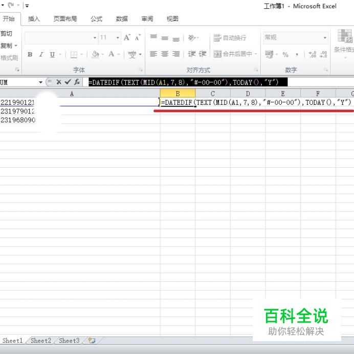 最后A列所有身份证号码的年龄都提取出来了。