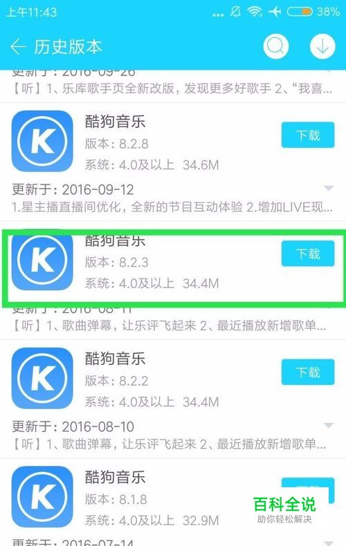 打开 安智市场,搜索 酷狗音乐,下拉点击历史版本,再下拉,找到 酷狗音乐 8.2.3这个版本下载(别的版本没有测试)