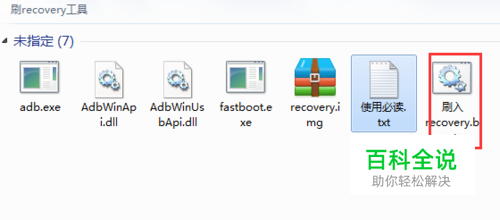 将上面下载好的华为G520联通版第三方recovery在电脑上解压打开,然后双击运行【刷入recovery.bat】,如下图;