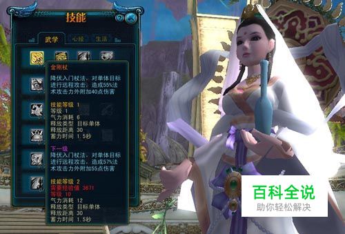 打开技能界面(快捷键K),可以看到武学、心经、生活三种技能,其中武学和心经是与战斗有关的。武学技能往往是主动施放的招数,心经技能则偏重提升自身的属性和能力,其中也有一部分主动施放的招数,你同样可以将它们拖动到快捷栏中备用。