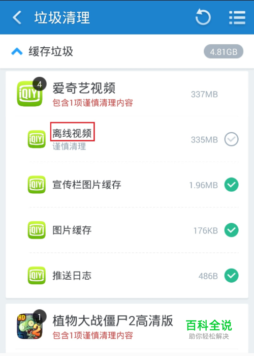 扫描完毕后,展开”缓存垃圾“就会看到,360清理大师帮助用户识别的缓存文件类型