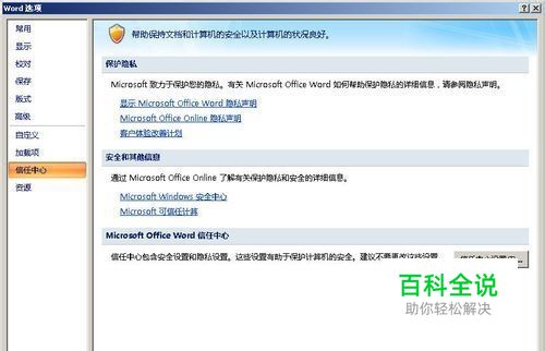 开个word,选信任中心,信任中心设置: