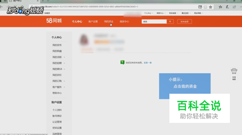 首先登录到58同城的个人中心界面,然后点击“我的资金”。