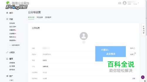 进入“微信公众号设置”中,在右侧显示栏位置点击“修改”