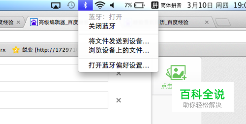 对于连接打印机有几种不同的方法。首先我们用蓝牙连接,前提是你的打印机也支持蓝牙功能。我们在电脑打开蓝牙,如图所示打开即可。
