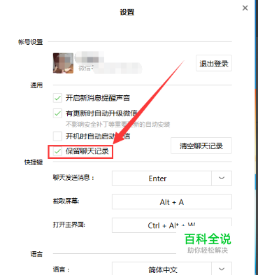 在设置界面上勾选中“保留聊天记录”,这样聊天记录就保存到了电脑上了。