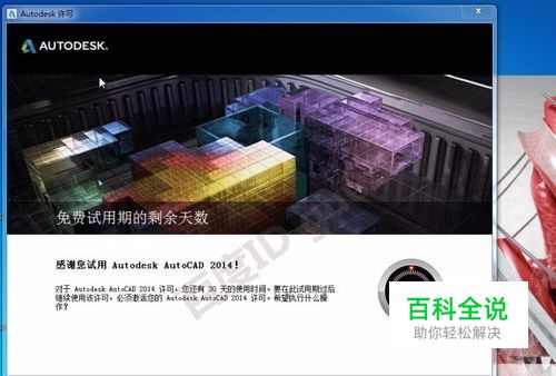 这里以AutoCAD 2014为例,打开软件后,要求激活或者试用,