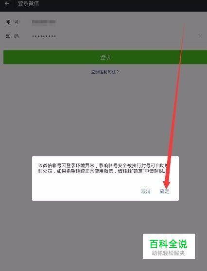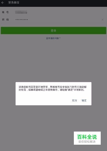 打开微信,输入账号密码点击登录,看到提示账号被封(如图)