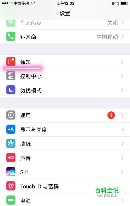找到“通知”