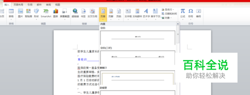 第一步,在“插入”中点击页眉,再选择空白(三栏)。