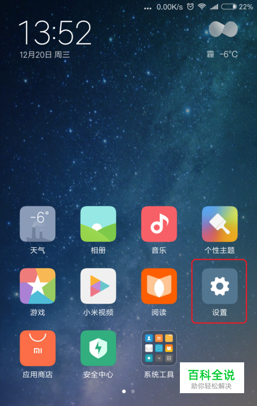 首先在桌面上找到设置这个图标,点击进入手机设置界面。