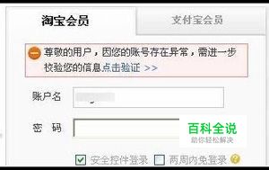 如果您在登录淘宝网、阿里旺旺的时候看到如下提示: 【尊敬的用户,因您的账号存在异常,需进一步校验您的信息,请点此进行验证】