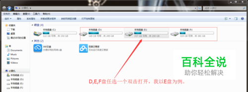 打开我的电脑,再打开D\E\F任意盘。我以E盘为例。